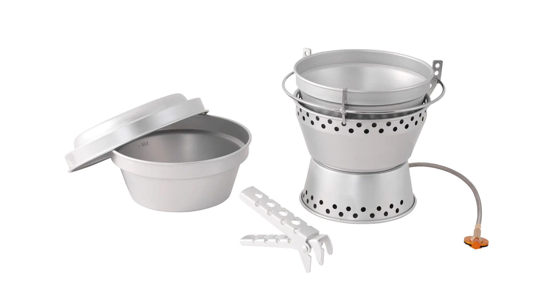 Easy Camp Storm Cooker & Stove eldunarsettið býður upp á áreiðanlega eldun í allskonar veðri. Það er létt og nett í flutningi og auðvelt að bera með sér. Settið inniheldur tvo potta og eina pönnu, brennara og töng. Gert úr álblöndu, ryðfríu stáli og kopar sem tryggja góða hitadreifingu. Settið pakkast þétt saman sem gerir geymslu og flutning einfaldan, þannig að eldun verður þægileg og vandræðalaus.